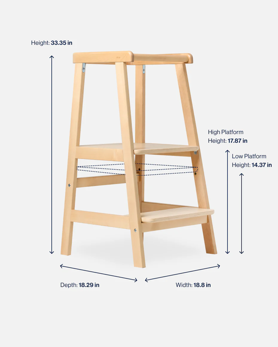Elevate your toddler's world with The Tower. Crafted from sustainable birch and designed with two adjustable heights to grow with your toddler.